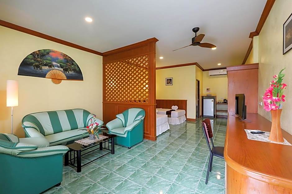 The suite provides a sofa, a tiled floor, as well as a private bathroom boasting a shower. The air-conditioned suite offers a flat-screen TV, a tea and coffee maker, a wardrobe, a safe deposit box as well as garden views. The unit has 2 beds.